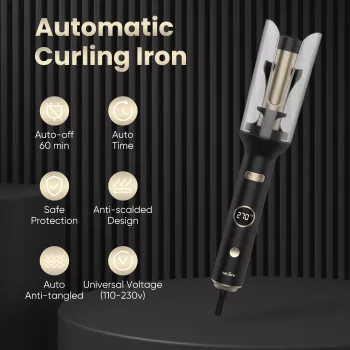 Automatic Ceramic Hair Curler with LCD Display & Dual Rotation